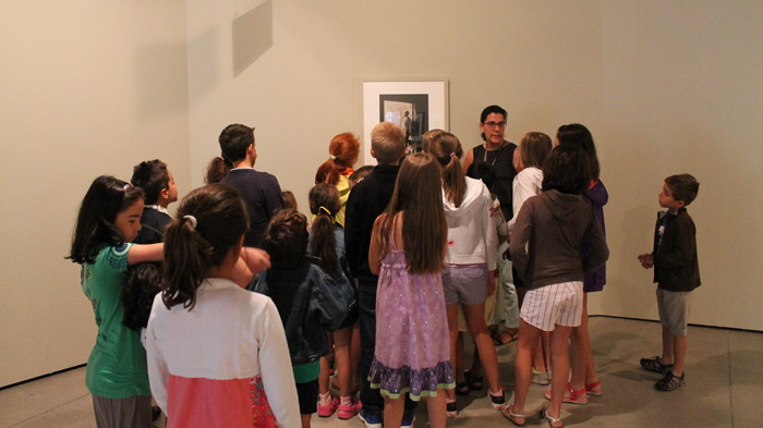 En cuanto a los talleres para familias, hicimos hincapié tanto en los temas como en la manera de trabajar de Antoni Arissa. Durante un breve recorrido por la sala, niños y adultos descubrían juntos los géneros fotográficos que practicó, cómo hacía posar a los retratados o su manera tan personal de colocar la cámara, lo que le hizo destacar como uno de los más importantes representantes españoles de la vanguardia fotográfica.