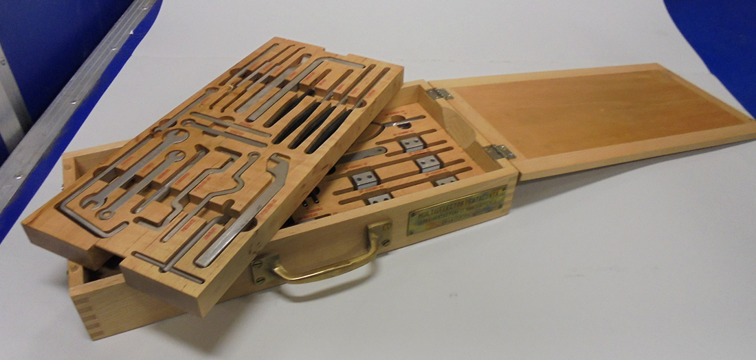 Me gustan mucho las herramientas, el utillaje de los técnicos. Los teléfonos originales del XIX son preciosos, los grandes equipos son impactantes, pero a mí me encanta la parte de las herramientas porque te habla de la gente que ha trabajado aquí, que las ha cuidado. Ves cajas de herramientas maravillosas y en perfecto estado que realmente han estado en uso, y en las que a veces pone el nombre del trabajador, porque cada uno era responsable de su equipo. Así que a través de esas herramientas te das cuenta de toda esa gente que ha ido pasando y cuidando de que todos los equipos funcionen. Cajas con unas llaves que parecen herramientas de cirujano o de dentista, que sirven para el mantenimiento de las centrales Pentaconta; cazos pesadísimos de hierro fundido para fundir ahí el estaño e ir empalmando cables; bandejas de empalmador…