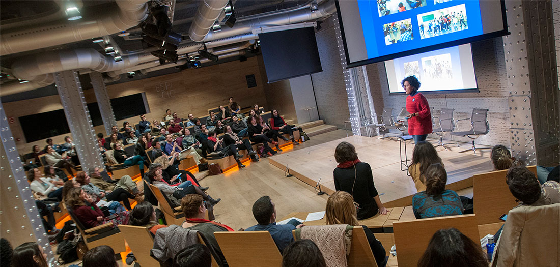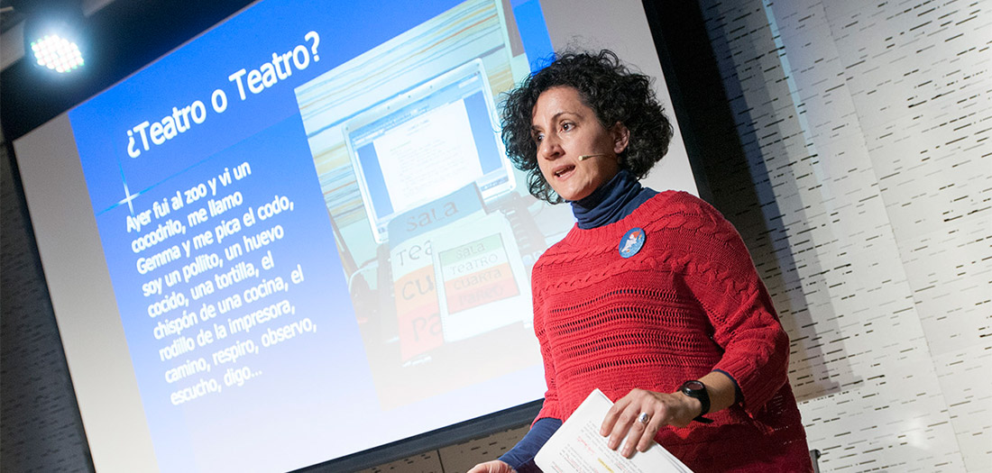 Gemma Serrano, profesora de lengua y literatura en el IES Antares de Rivas Vaciamadrid, nos contó en primera persona su experiencia con el teatro como herramienta para trabajar con sus alumnos cada día. Para ella a través del teatro la palabra se convierte en vía de resolución de conflictos, se crea grupo, se trabaja, disfruta, juega, aprende.