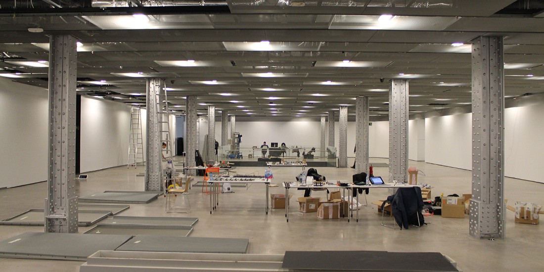 Os dejamos con una galería de imágenes tomadas durante el montaje, a dos días de la inauguración de la pieza. Y os recordamos que podéis disfrutar de ‘Kinematope’ hasta el 15 de mayo, en la cuarta planta del Espacio Fundación Telefónica.