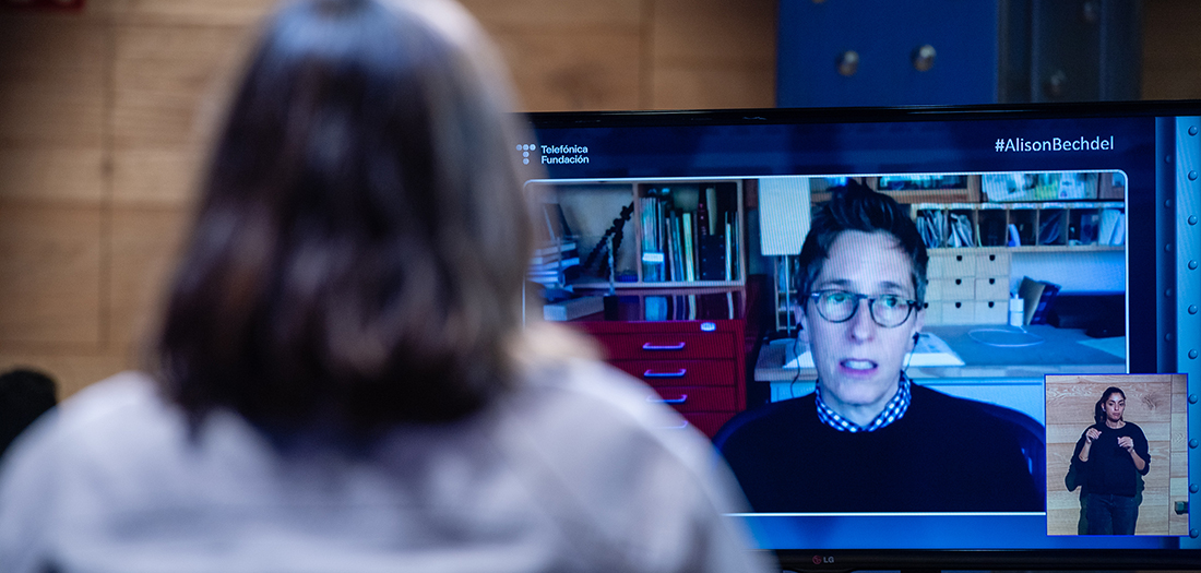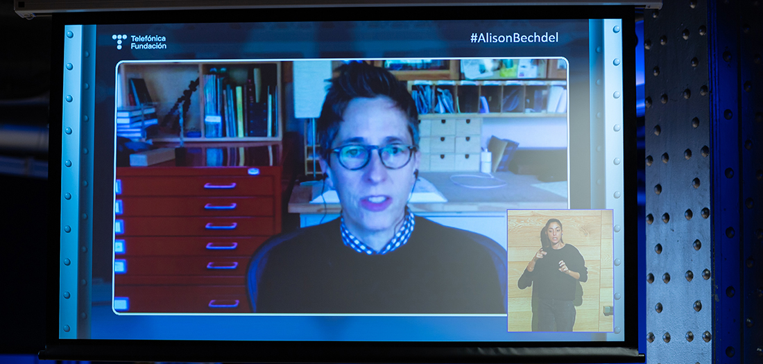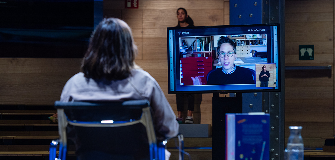 Este evento ha sido interpretado a LSE, se ha podido seguir en streaming en abierto en nuestra web y en redes con el hashtag #AlisonBechdel.