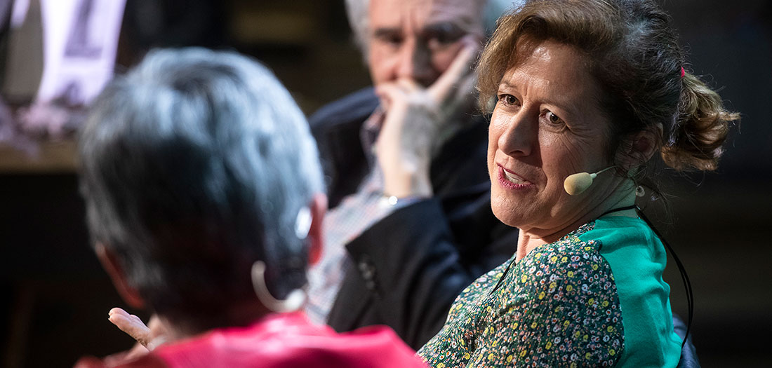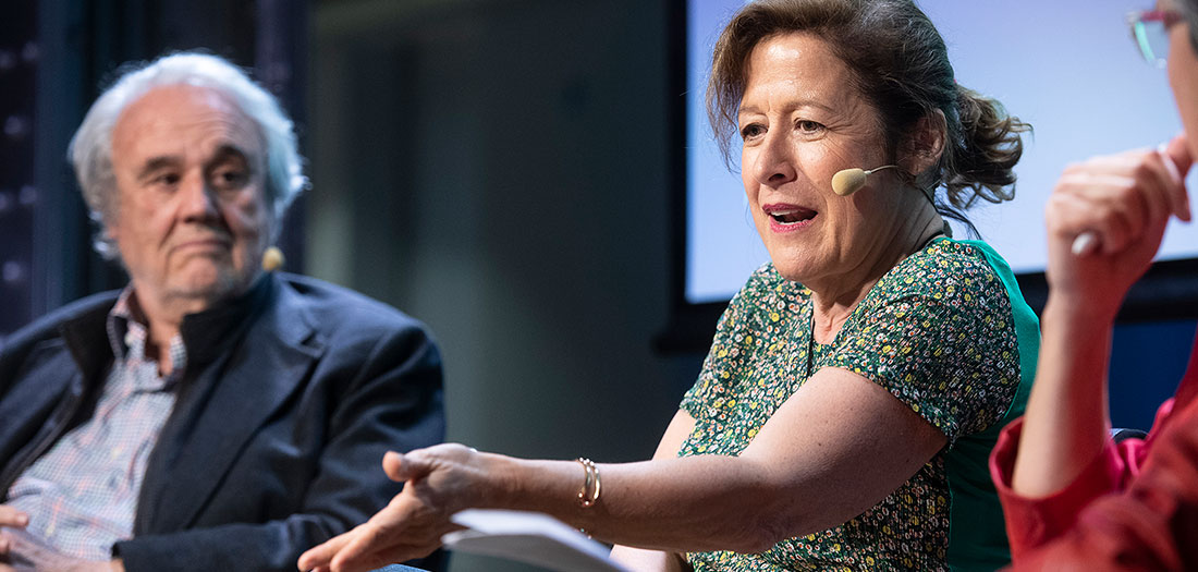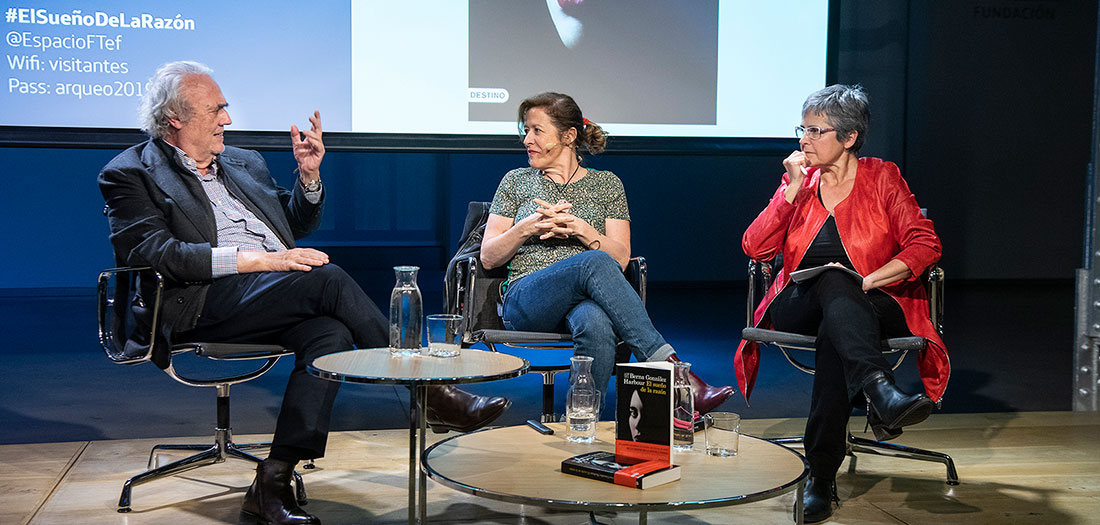 Para desvelar los secretos de este misterioso Madrid, hemos recibido en nuestro auditorio a una de las escritoras de novela negra más brillantes de la actualidad, Berna González Harbour. En su último libro, El sueño de la razón (Destino, 2019), la comisaria Ruiz vuelve para indagar en la extraña línea que entrelaza varios crímenes con aquel universo, el Madrid de Goya con el Madrid más actual. Le han acompañado en este encuentro el cineasta Manuel Gutiérrez Aragón y la periodista Eva Orúe, quien ha dinamizado la charla.