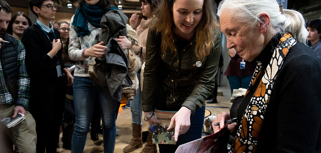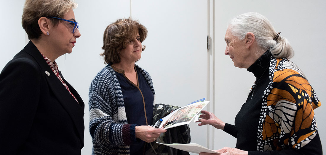 Encuentro con la primatóloga británica Jane Goodall, Mensajera de la Paz de Naciones Unidas y Exploradora en Residencia de la Sociedad National Geographic, en colaboración con el Instituto Jane Goodall.