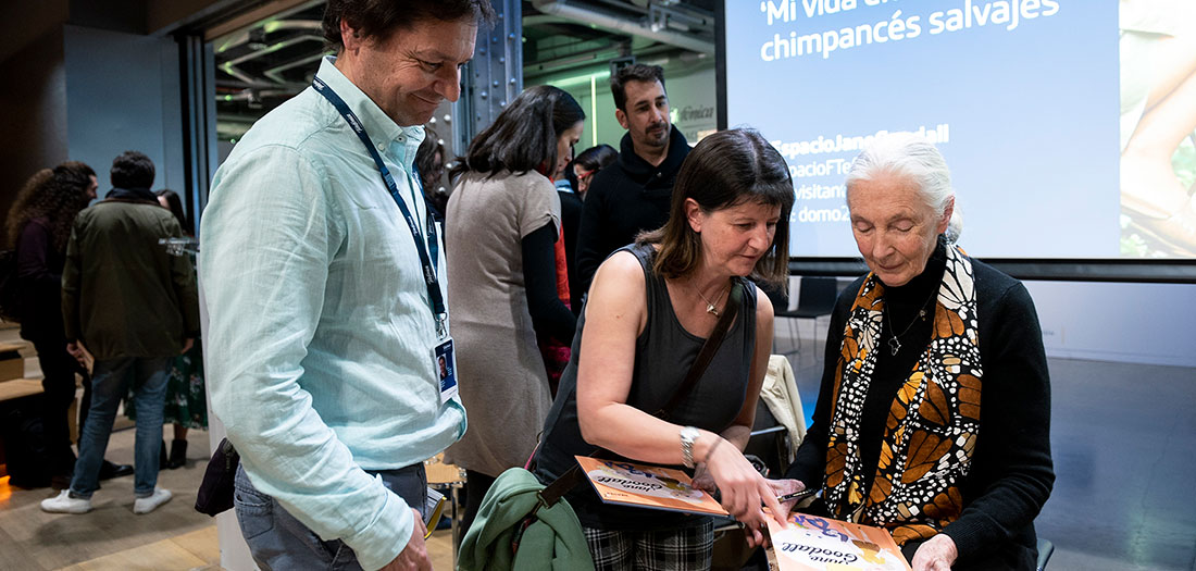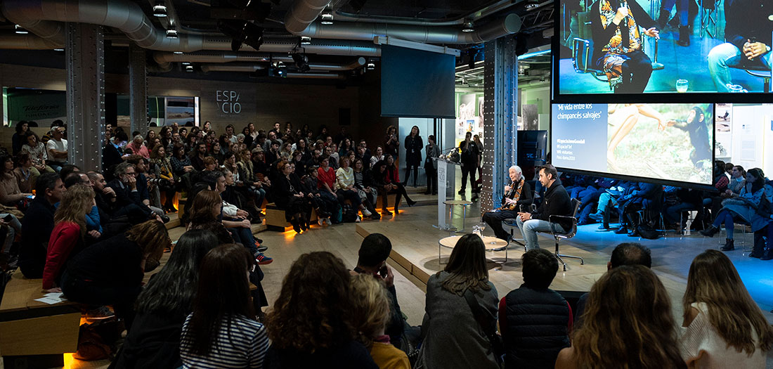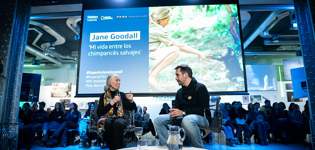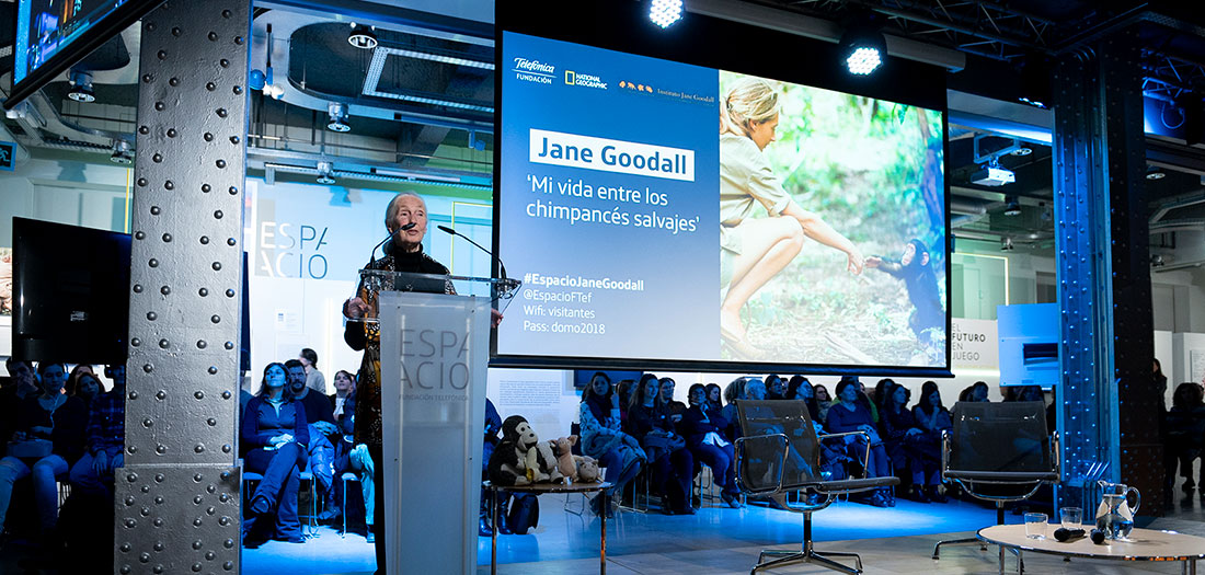 Espacio Fundacion Telefónica y National Geographic han presentado un encuentro con la primatóloga británica Jane Goodall, Mensajera de La Paz de Naciones Unidas y Exploradora en Residencia de la Sociedad National Geographic. En colaboración con el Instituto Jane Goodall, tuvo lugar el 14 de diciembre de 2018, con motivo de la exposición ‘Una ventana al mundo: 130 años de National Geographic‘ que se puede visitar en Espacio Fundación Telefónica hasta el 24 de febrero de 2019.