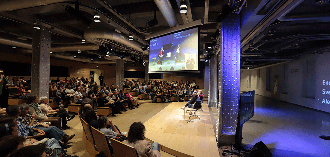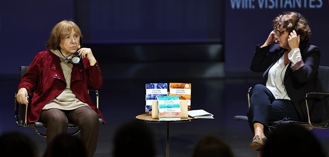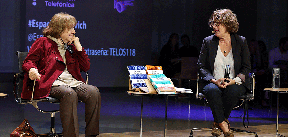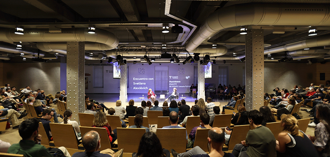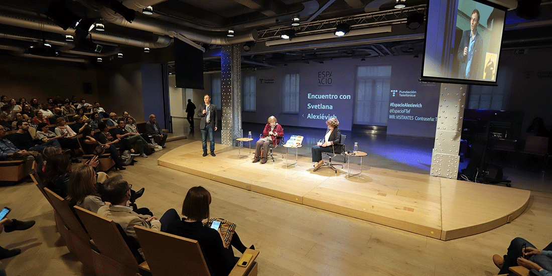 Acogimos en nuestro auditorio un encuentro presencial con la escritora y periodista Premio Nobel de Literatura 2015, Svetlana Alexiévich, que conversó con la periodista Montserrat Domínguez.