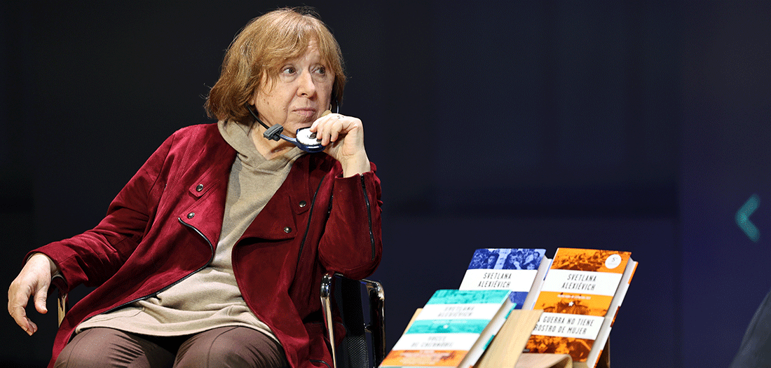 Es una prestigiosa periodista y escritora bielorrusa cuya obra ofrece un retrato profundamente crítico de la antigua Unión Soviética y de las secuelas que ha dejado en sus habitantes.