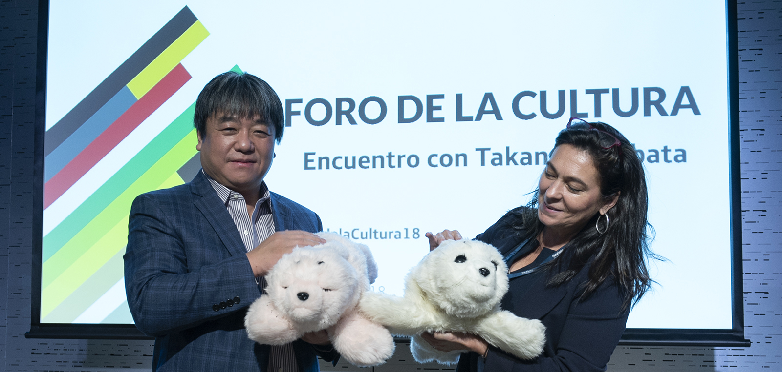 Ya tenemos a Takanori Shibata, científico e investigador pionero en el campo de la robótica terapéutica, en nuestro auditorio. ¡La foca Nuka también está con nosotros! Puedes seguir el encuentro en directo aquí ➡ https://t.co/ECROY0Y3y8 #ForodelaCultura18 pic.twitter.com/1oJOjuR8bF
