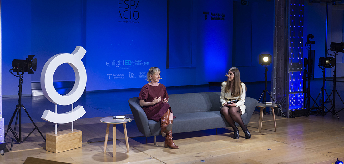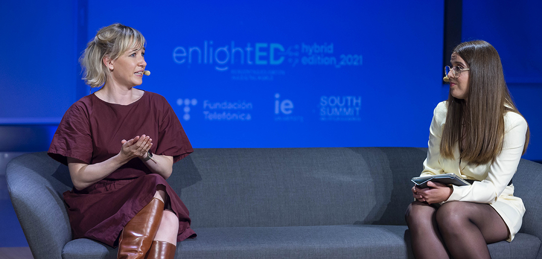 Hemos recibido en nuestro auditorio a Linda Liukas, programadora, empresaria, ilustradora y escritora infantil, con motivo de la celebración de ‘enlightED Hybrid Edition 2021’, cuarta edición del congreso sobre innovación educativa organizado por Fundación Telefónica, IE University y South Summit, cuyo lema este año es Closing the gaps.