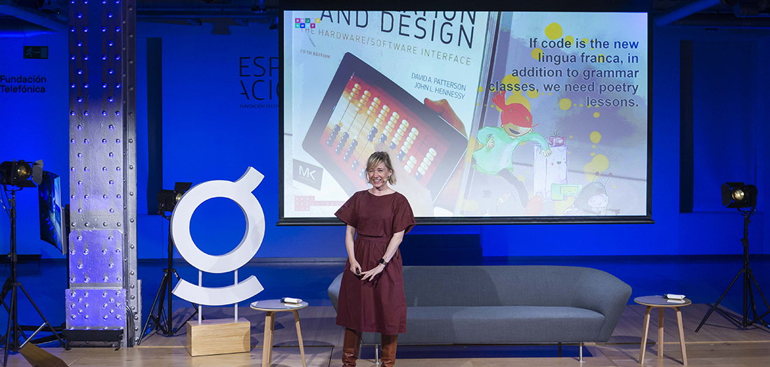 La informática: ¿pertenece a la ingeniería, a la ciencia o a las artes? ¿Son los ordenadores una herramienta o un juguete? La educación informática trata de enseñar a codificar, pero también trata de crear un lenguaje para que los niños hablen sobre el mundo. ¿Qué podemos aprender de las estrellas, los glaciares y los hongos en lo que respecta a la educación informática? ¿Y por qué necesitamos un Whole Earth Catalogue o un método Montessori para la educación informática en la primera infancia? ¿Y por qué empezar con la infancia y su intensa construcción de mundos, secretos y silencios? Todas estas cuestiones las abordó Liukas en su presentación y en la conversación posterior con Maria Teresa Nieto, especialista senior en blockchain en Telefónica Tech.