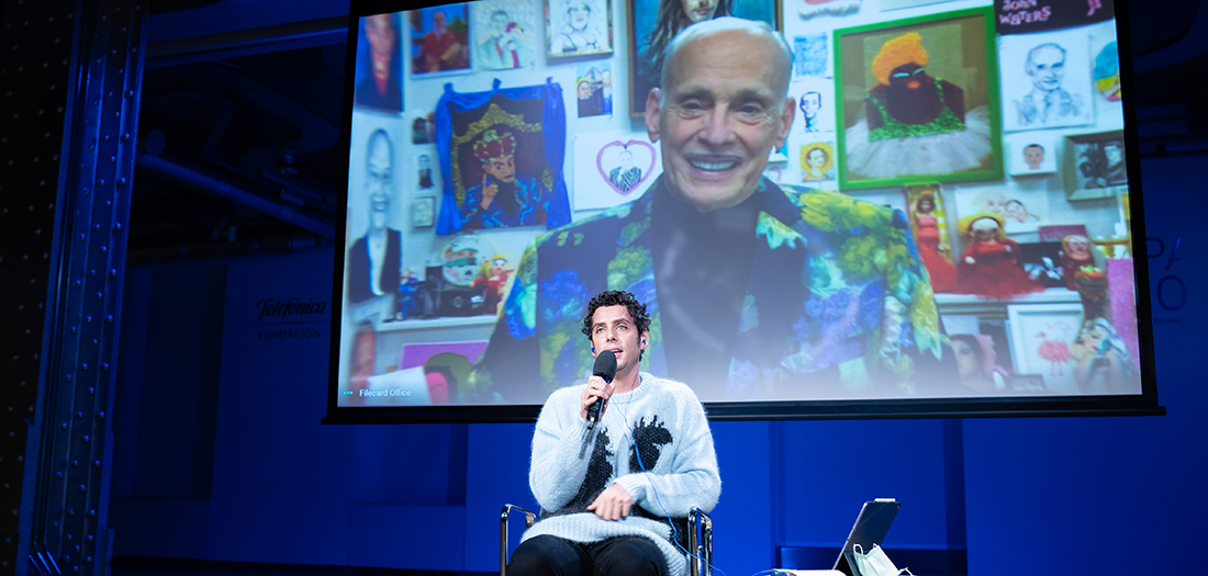 El Festival RIZOMA nació en el 2010 ofreciendo lo que llamaban ‘Encuentros Surrealistas’ y en el 2020 retoma la tradición con un encuentro especial con el director de culto John Waters. El director, autor y artista vino a Madrid por primera vez en el 2011 cuando fue homenajeado por RIZOMA, y ‘vuelve’, retransmitiendo desde la estratosfera de su casa en Baltimore, Maryland. Waters ha estado acompañado por el director, actor y artista Eduardo Casanova, en un encuentro donde se ha hablado de la temática del festival en este 2020: Mascaradas, y el papel de las máscaras en el arte y la identidad.