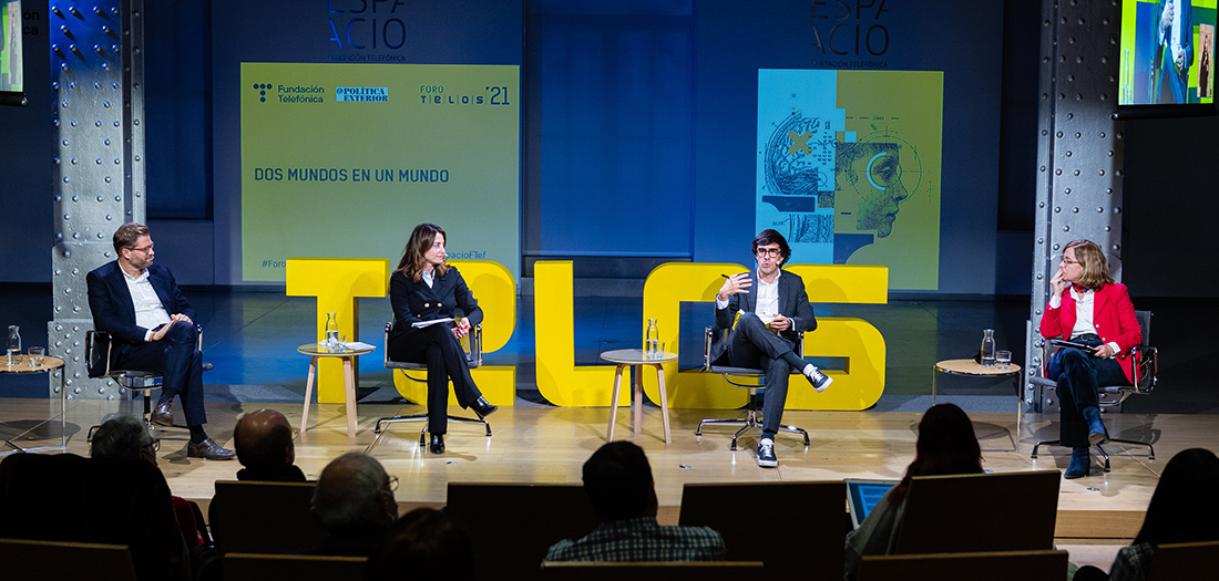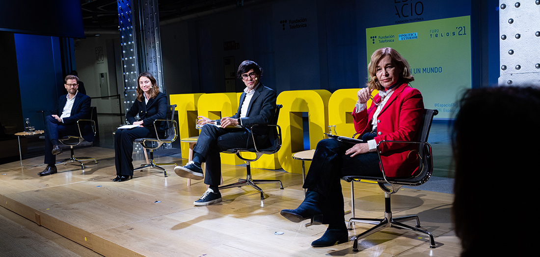 Acogemos el último evento presencial del Foro TELOS 2021 con una mesa realizada en colaboración con la revista Política Exterior, en la que hemos tenido como invitados a Belén Romana, miembro de varios Consejos de Administración de empresas internacionales, Christoph Steck, Director de Políticas Públicas e Internet en Telefónica, Alicia Richart, directora general para España y Portugal de Afiniti, y Borja Bergareche Sainz de los Terreros socio de Comunicación y Liderazgo Corporativo de Harmon. El encuentro ha estado moderado por Áurea Moltó, directora de la revista Política Exterior.