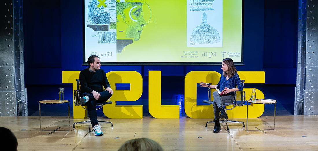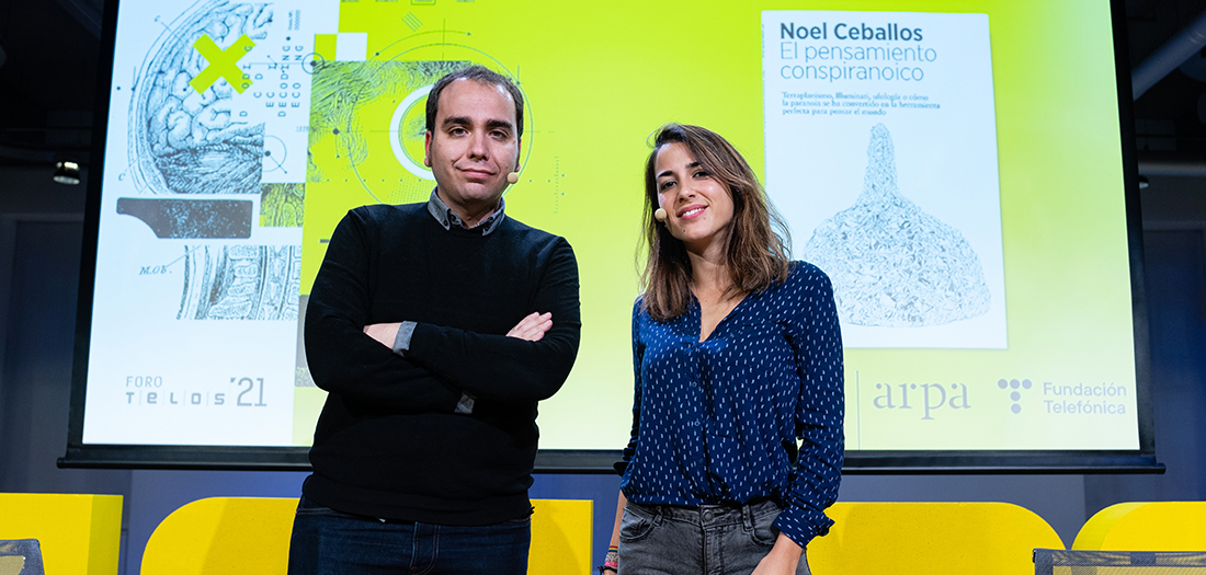 En el marco de la tercera edición de ‘Foro TELOS 2021, titulado ‘Recordar el futuro’ y con motivo de su última publicación ‘El pensamiento conspiranoico‘ (Arpa), acogemos un encuentro con su autor, el escritor y periodista Noel Ceballos, quien ha estado acompañado por Rocío Vidal, divulgadora científica en el canal de Youtube ‘La gata de Schrödinger’.
