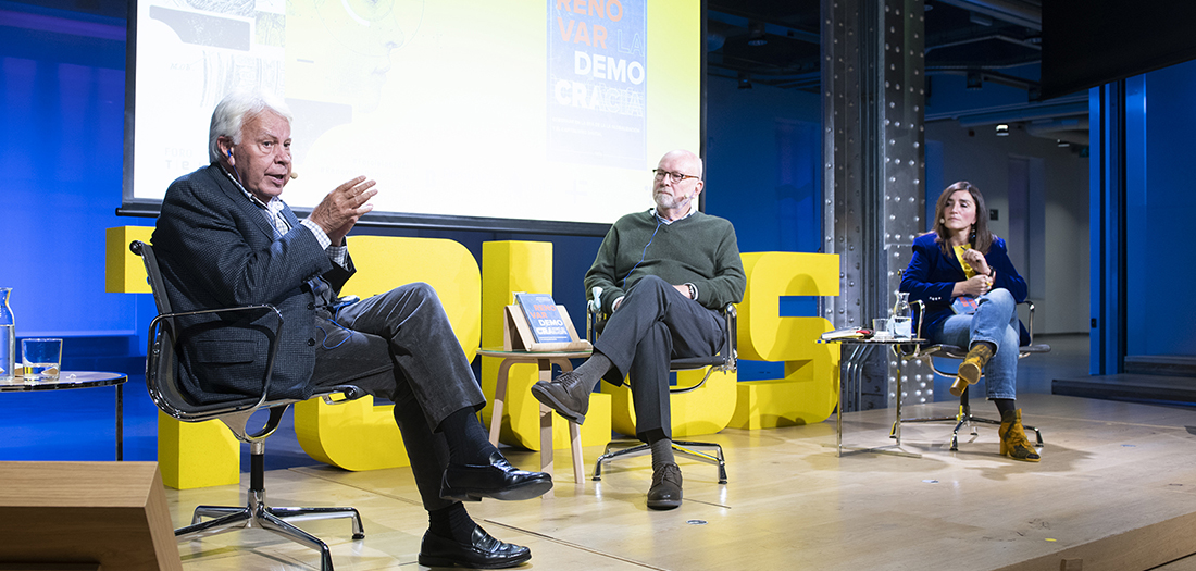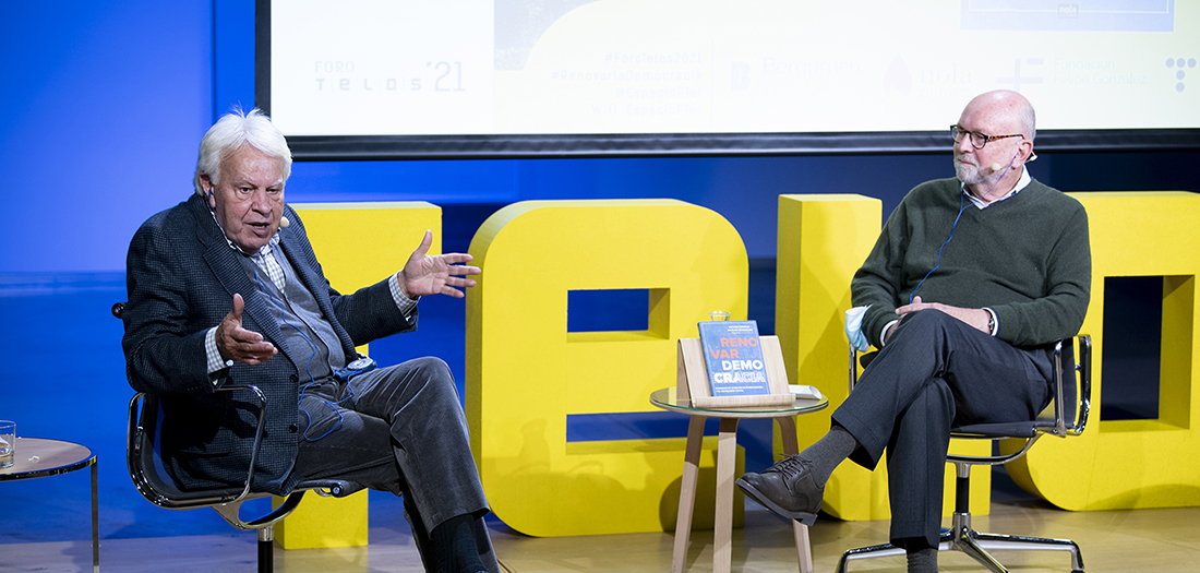 Acogemos en nuestro auditorio una nueva conversación del Foro Telos 2021. Con motivo de la edición en español del libro ‘Renovar la democracia’, publicada por Nola Editores, Nathan Gardels, Felipe González, y Rocío Martínez-Sampere conversan sobre la crisis de la democracia representativa y los desafíos a los que se enfrenta en la era de la globalización y el capitalismo digital.