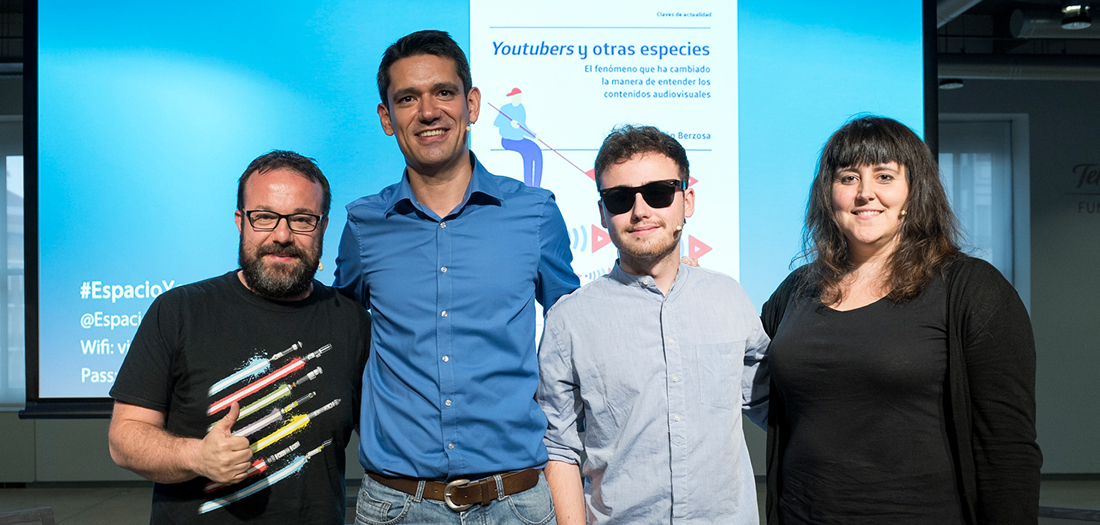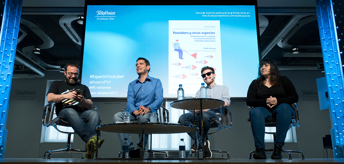 El pasado jueves 4 de mayo, organizamos la charla ‘Hasta los youtubers y más allá’ en el Espacio Fundación Telefónica, con motivo de la publicación del libro de editado por Fundación Telefónica, ‘Youtubers y otras especies’, que tiene su origen en el ciclo ‘Youtubers, personas (y cintas de vídeo)‘.