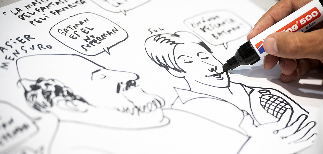 Como siempre, nos acompañó también el dibujante Enrique Flores (@cuadernista) y nuestros #martianos, grupo de jóvenes de entre 14 y 21 años, quienes aportarán su visión y su experiencia personal y generacional, y que por un día, emularán a Robin, el chico maravilla, convirtiéndose en los perfectos compañeros de viaje del Hombre Murciélago.