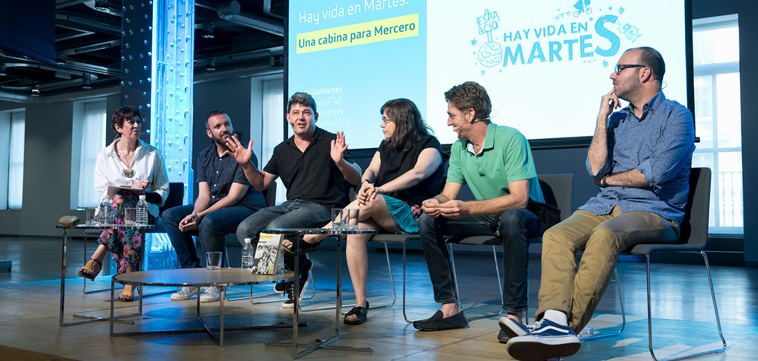 Para descubrir esta aventura de primera mano, hemos contado con el guionista David Linares, precursor de la iniciativa; Antonio Mercero, escritor y periodista; la escritora Mercedes Cebrián, el periodista Borja Terán y el actor Juanjo Artero, protagonista de la serie Verano Azul, en un encuentro moderado por la periodista Sol Alonso. Como es habitual, nos ha acompañdo el dibujante Enrique Flores (@cuadernista ) y nuestros #martianos, grupo de jóvenes de entre 14 y 21 años, quienes han aportado su visión y su experiencia personal y generacional.
