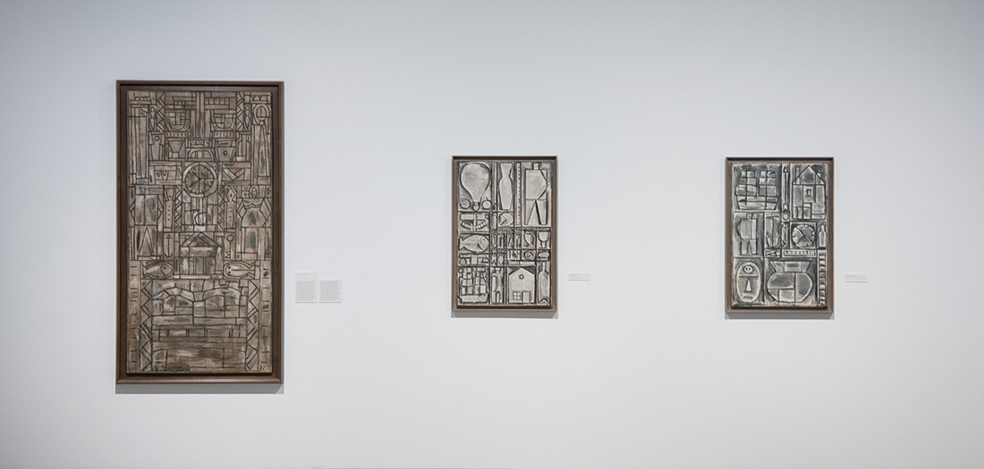 Para 1935 había fundado la Asociación de Arte Constructivo, y entre 1935 y 1943 estableció uno de los repertorios más sorprendentes de abstracción sintética y concreta en las Américas. Estos cuadros arquitectónicos son, en su mayoría, cromáticamente reducidos a un contraste de blanco y negro. Luz y sombra conforman el plan de la superficie, mientras que elementos tubulares y la sugerencia de misteriosas profundidades crean una fuerza orgánica dentro de estructuras reticulares y ordenadas. La exhibición incluye varias de estas obras esenciales, tales como ‘Composición abstracta tubular’ (1937), ‘Forma abstracta en espiral modelada en blanco y negro’ (1938), y ‘Construcción en blanco y negro’ (1938).