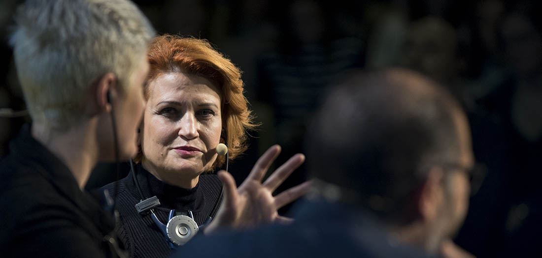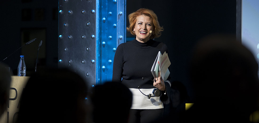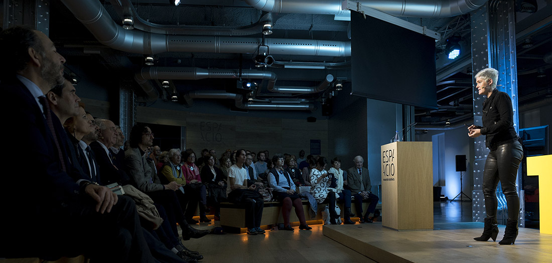 Tras la interesante charla subió al escenario Almudena Bermejo, directora de Acción Cultural de la Fundación Telefónica que dio las líneas maestras del nuevo rumbo de la revista TELOS destacando el nuevo diseño y los nuevos contenidos dirigidos a captar a un público más amplio de cara a seguir siendo referencia en una sociedad que ya es plenamente digital.