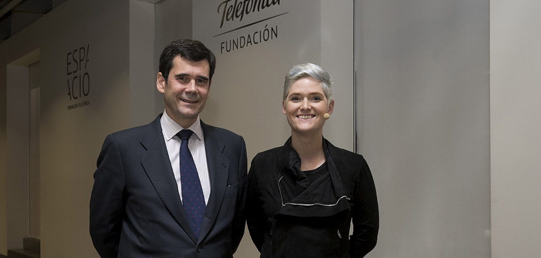 Amber Case (@caseorganic), portada de este nuevo número de TELOS, tomó entonces la palabra para compartir con la audiencia su visión del futuro de la tecnología. La ciborg antropóloga, adalid de la calm technology, destacó la necesidad de que el futuro de las relaciones entre tecnología y seres humanos esté marcado por la cooperación, por una armonía que mejore a ambos. La norteamericana aboga porque “los humanos no se comporten como máquinas” y que desarrollemos una tecnología capaz de ayudarnos a tener más tiempo y así poder ser más libres y poder desarrollar nuestras capacidades creativas. “La tecnología, las máquinas, tienen que trabajar con nosotros y no por encima de nosotros” afirmó. En su amena ponencia Amber Case explicó que estas nuevas relaciones tienen que estar basadas en principios éticos y morales para preservar los valores humano. “La tecnología debe de integrarse en nuestras vidas de forma más natural sin provocar que estemos continuamente pendiente de ella” dijo.