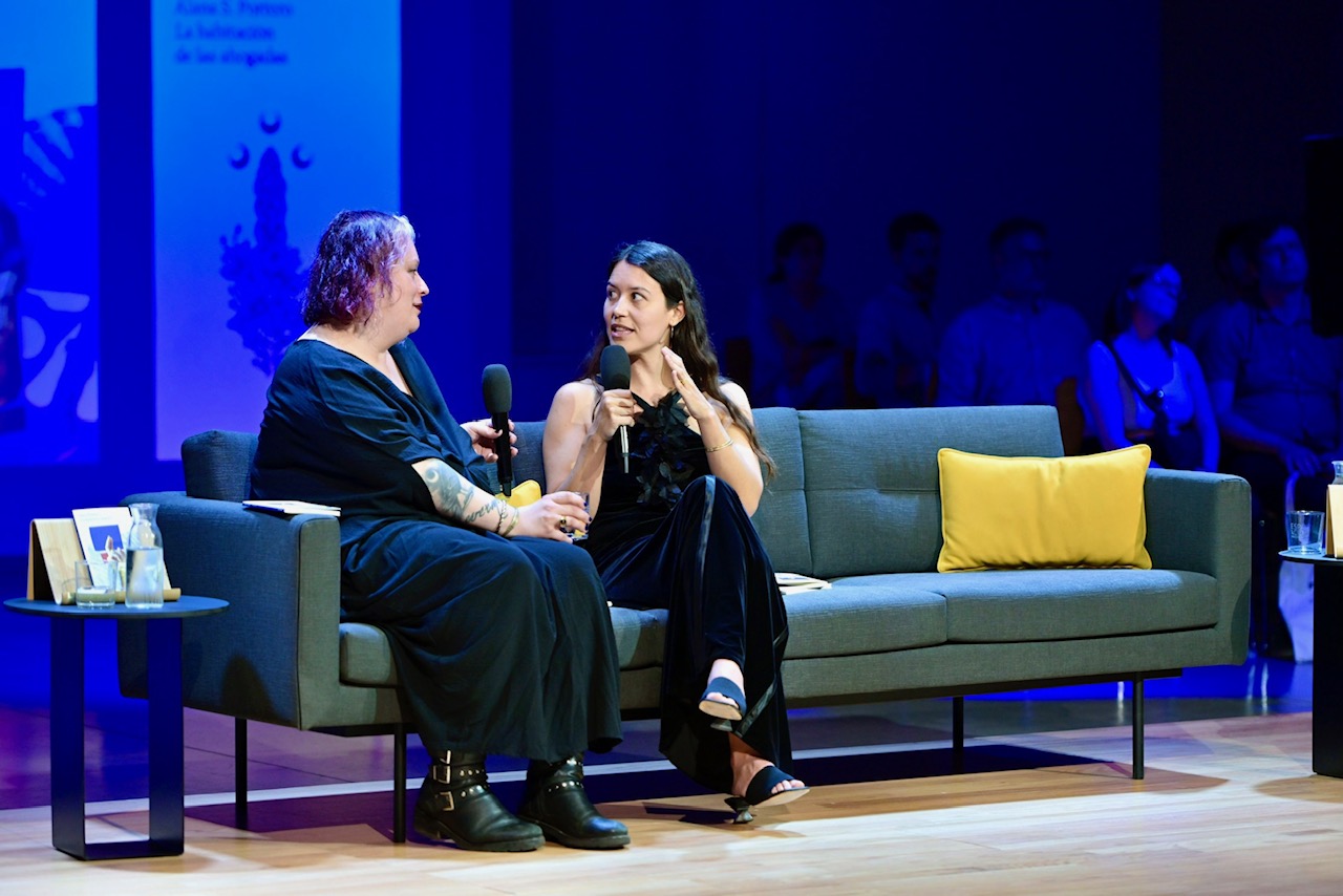 Hemos acogido en nuestro auditorio un encuentro con las escritoras Sara Torres y Alana S. Portero. Ambas nos han invitado a La habitación de los conjuros, un espacio en el que habitan danzas y cantos, profecías y augurios, diosas y reinas, banquetes y rezos; un espacio en el que conjurar juntas, como en un ritual, el poder transformador de la poesía.
