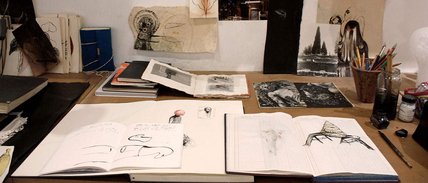 Materiales de dibujo y pintura diversos según preferencias, sobre todo de ejecución rápida (tintas, lápices, acuarela, gouache..). Papeles, cuadernos o libros de bocetos. Es importante disponer de papel suficiente para no temer realizar múltiples dibujos y utilizarlos incluso como posterior material de collage. Cámara fotográfica y portátil si constituyen una herramienta de documentación y trabajo habitual. En general se trata de tener muchas posibilidades de abordar la creación artística sin miedo al proceso de destrucción y transformación.