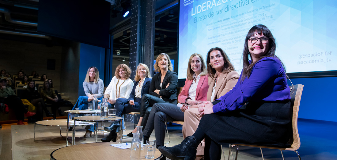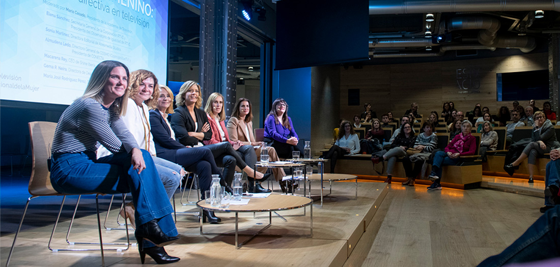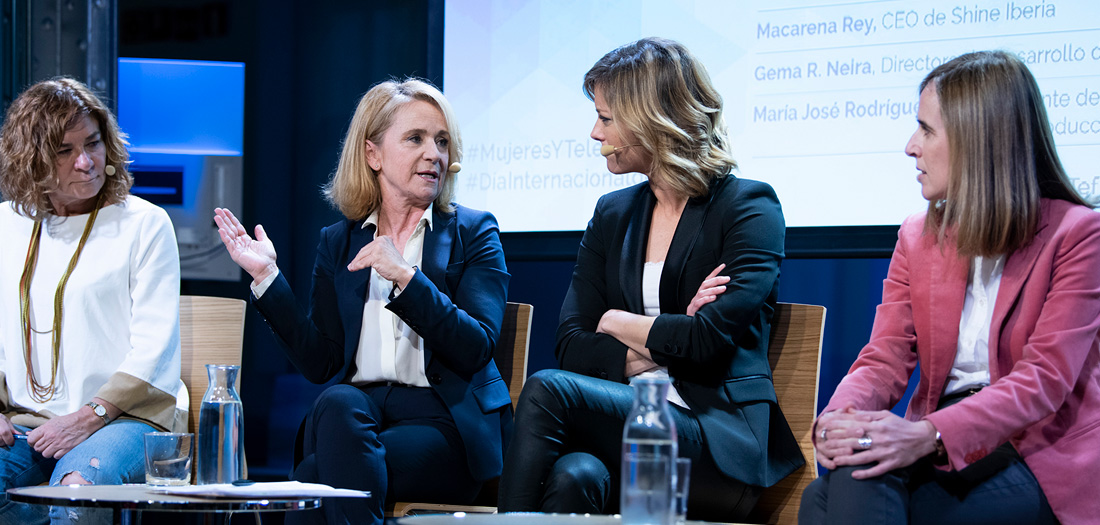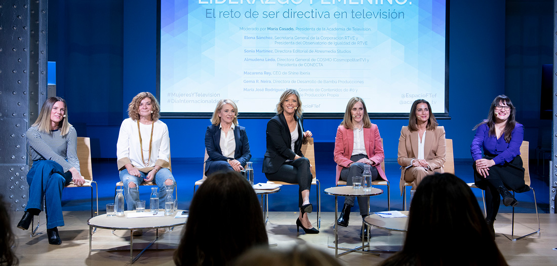 Moderado por María Casado, presidenta de la Academia de Televisión, hemos contado con la presencia de Elena Sánchez, secretaria general de la Corporación y Presidenta del Observatorio de Igualdad de RTVE; Sonia Martínez, directora editorial de Atresmedia Studios; Almudena Ledo, directora general de Cosmopolitan TV y presidenta de CONECTA; Macarena Rey, CEO de Shine Iberia; Gema R. Neira, directora de Desarrollo de Bambú Producciones, y María José Rodríguez Pérez, gerente de Contenidos de #0 y de Producción Propia.
