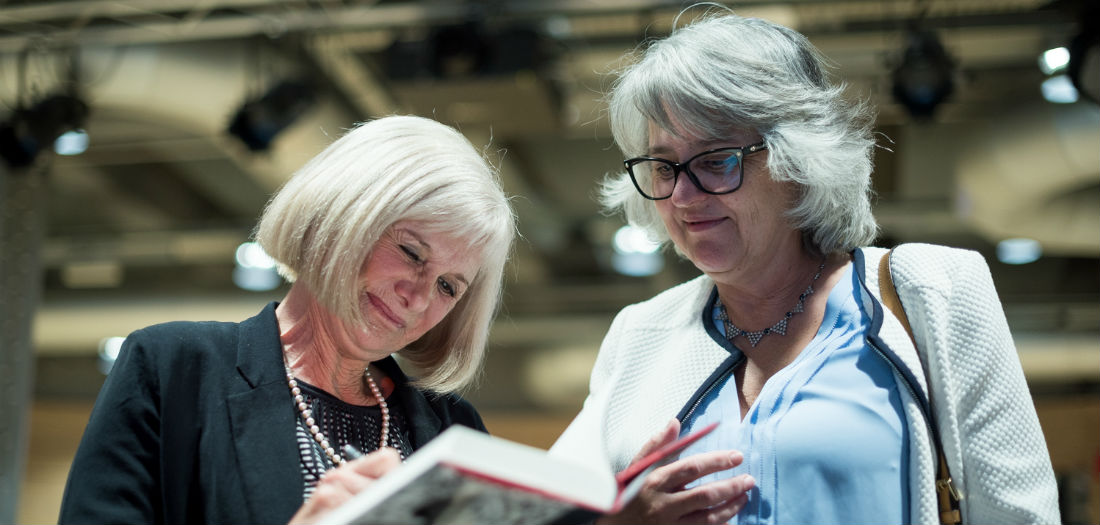 Alicia Giménez Bartlett firmando un ejemplar