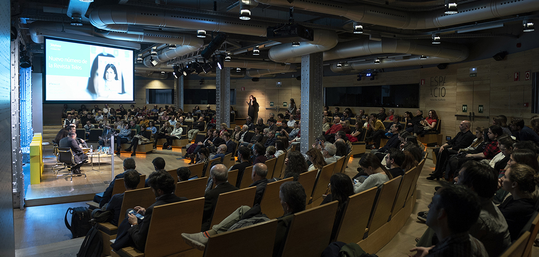 Al final de la jornada se ha hecho entrega del número 110 de la revista. Este evento ha sido interpretado a LSE, se ha podido seguir en streaming en esta web y en redes con el hashtag #Telos110.