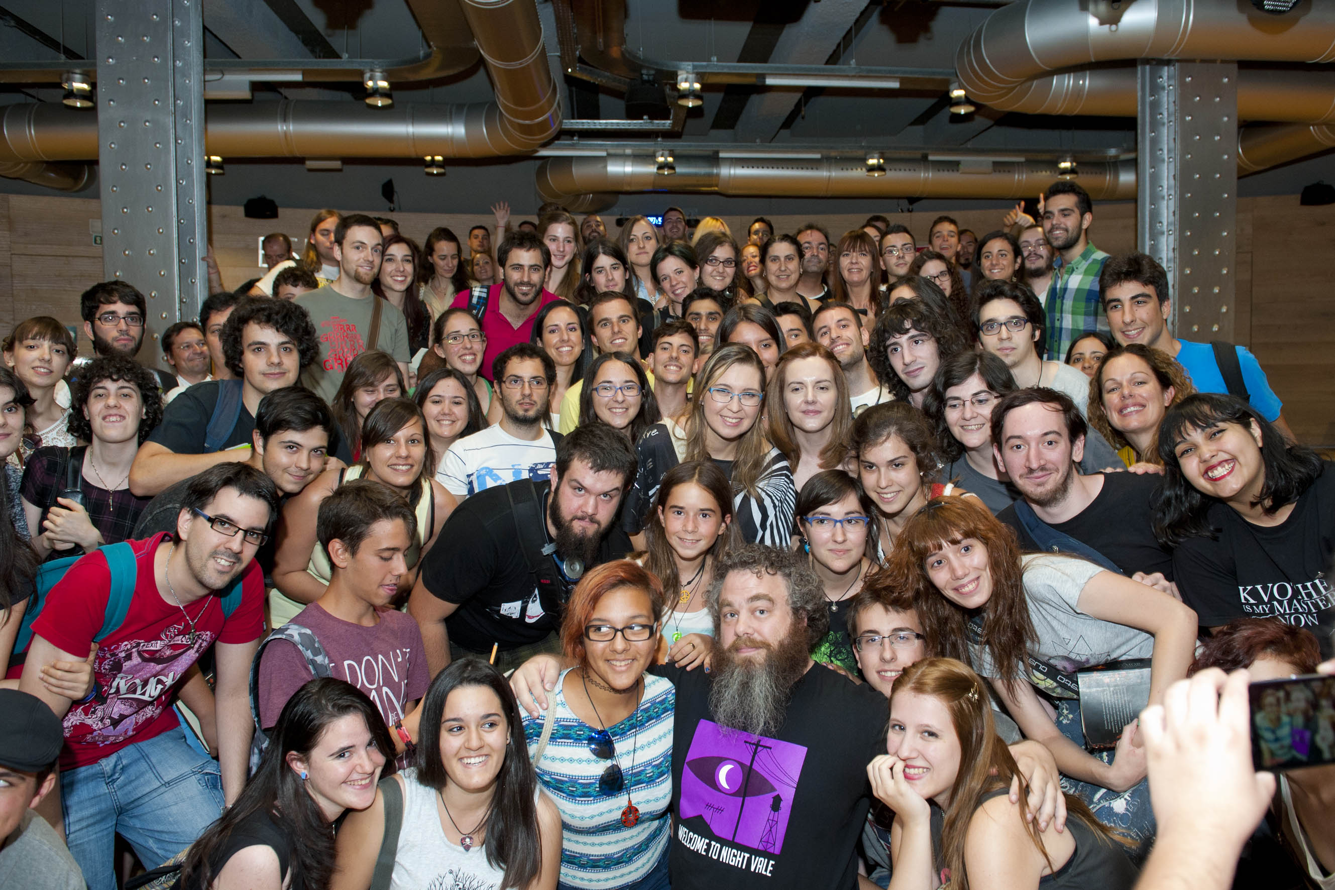 Patrick Rothfuss (@PatrickRothfuss), autor de ‘El nombre del viento’ y ‘El temor de un hombre sabio’ (Plaza & Janés, 2009 y 2011), las dos primeras entregas de la Crónica del Asesino de Reyes, impartió una charla en el auditorio el pasado 29 de julio a las 19:00. El evento fue presentado por Sonsoles Ónega, contando entre los asistentes con el director de cine Rodrigo Cortés y el escritor Juan Gómez Jurado. Un público numeroso pudo disfrutar de la presencia del conocido escritor, que en todo momento se mostró simpático y cercano con sus seguidores.