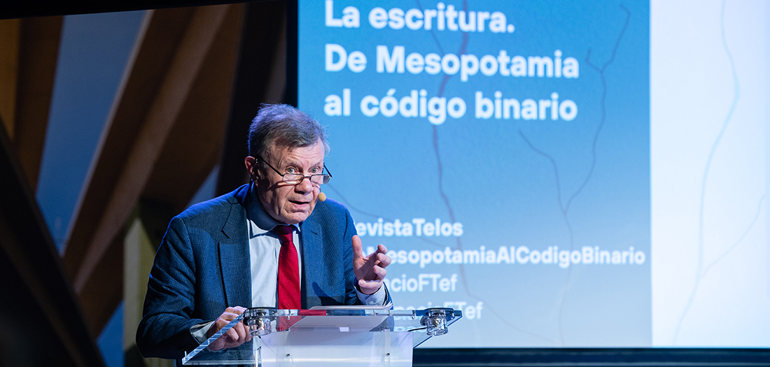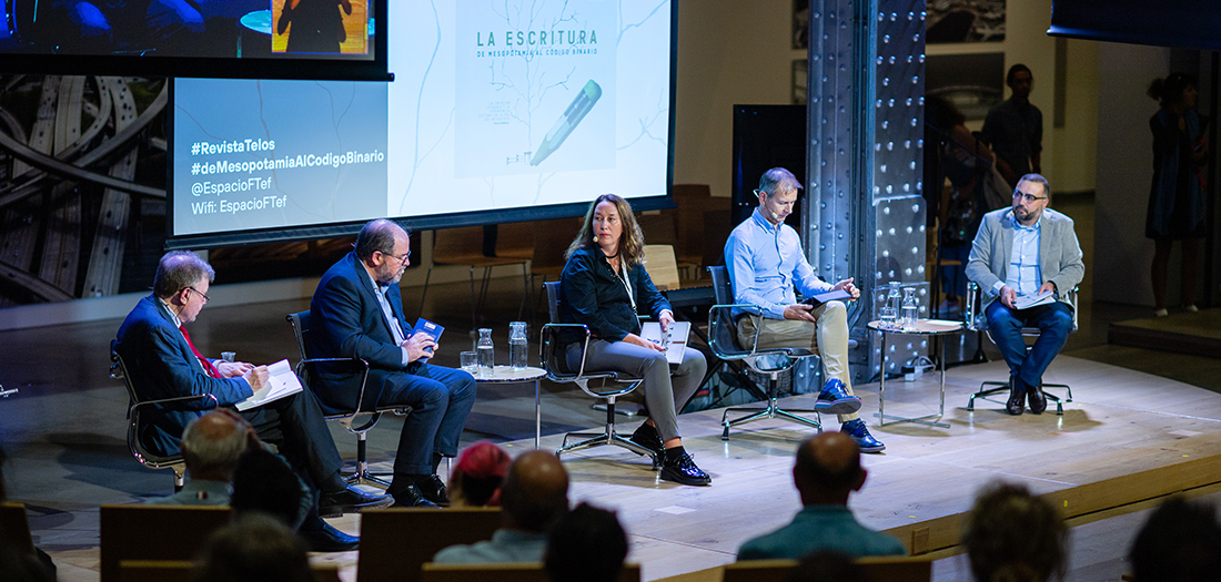 En este contexto, presentamos el número 120 de la revista TELOS, “La escritura. De Mesopotamia al código binario”, donde contaremos con uno de los más distinguidos historiadores de la cultura del libro y de la lectura, Roger Chartier, profesor emérito en el Collège de France y director de estudios de la École des Hautes Études en Sciences Sociales, que acaba de publicar su libro “Editar y traducir” (Gedisa, 2022). Contaremos, asimismo, con Tatiana Komar, música profesional y pedagoga; Álvaro de la Rica, profesor titular de Teoría de la Literatura y Literatura Comparada y Richard Benjamins, Chief AI & data strategist en Telefónica.