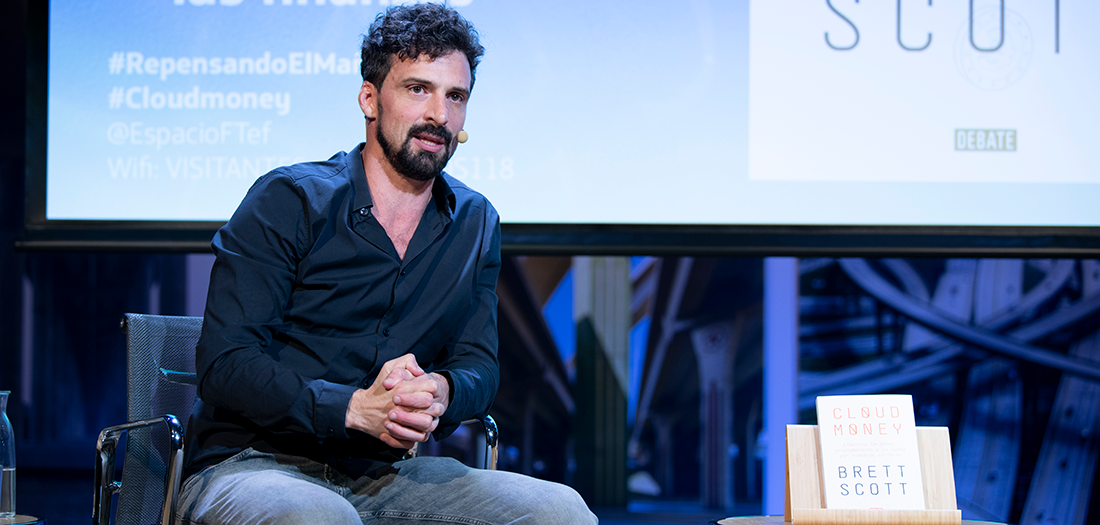Continuamos nuestro foro 'Repensando el mañana' analizando la letra pequeña de la digitalización de nuestras carteras. Con motivo de la publicación del ensayo “Cloudmoney” (Debate), acogimos a su autor, Brett Scott, quien conversó con la periodista Marta Peirano.