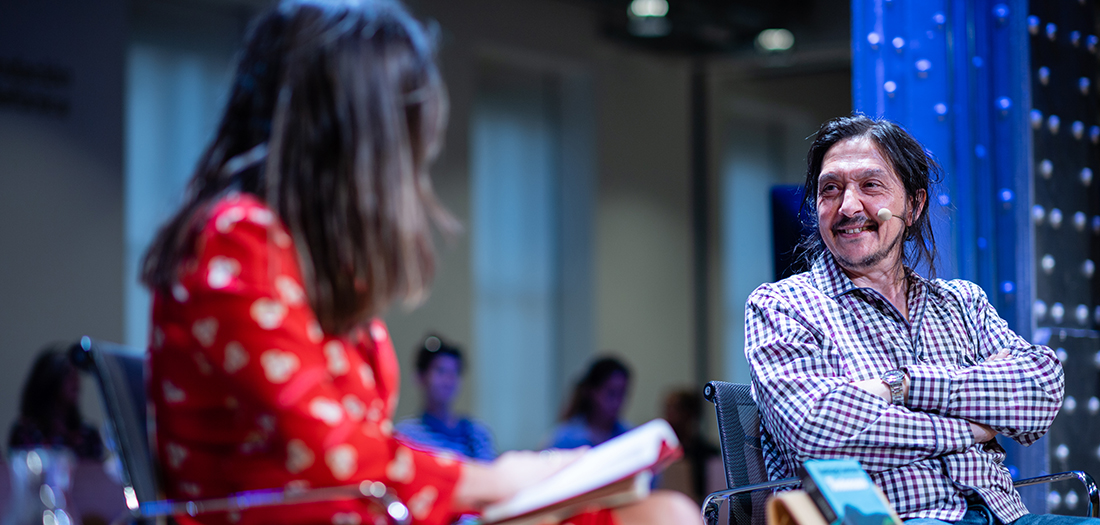 El autor comparte con Raquel Peláez y con los asistentes cómo ha sido el proceso creativo de esta nueva novela.