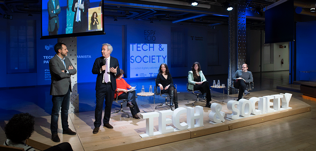 El ciclo Tech&Society de Aspen Institute España y Fundación Telefónica tiene como objetivo establecer un foro para la reflexión plural e ilustrada acerca de las grandes cuestiones planteadas por los avances de la tecnología digital y su influencia en ámbitos tan diversos como las relaciones humanas, la política, la educación, la cultura, la economía o la medicina. El programa consta de un ciclo de conferencias abiertas, donde un experto en cada una de estas materias expondrá su punto de vista sobre cómo la tecnología digital está influyendo en nuestras vidas. Todas las conferencias que se han realizado desde 2017 pueden consultarse aquí.