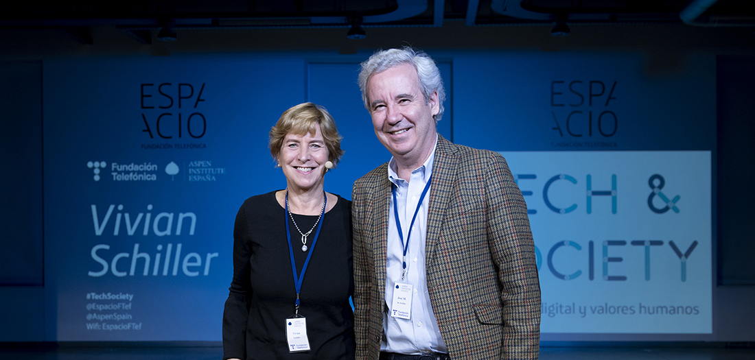 Acogemos en nuestro auditorio la tercera sesión presencial del ciclo Tech & Society 2021, coorganizado con Aspen Institute España, y que ha tenido como invitada principal a Vivian Schiller, Directora Ejecutiva de Aspen Digital, en un encuentro con José María de Areilza, Secretario General de Aspen Institute España.