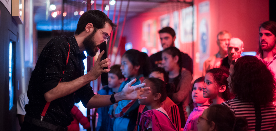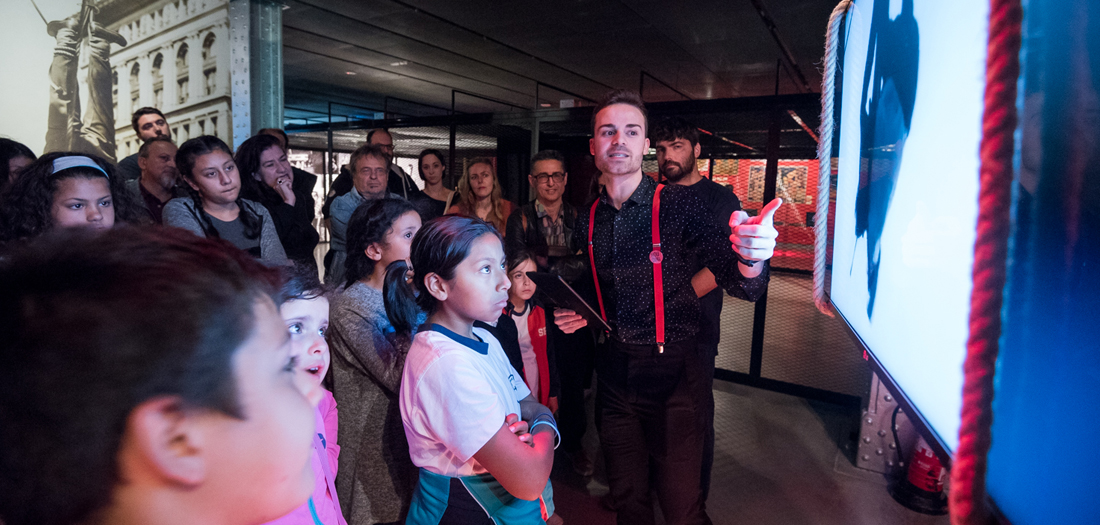 Harry Houdini trabajó durante algunos años en los famosos “Museos de diez centavos”, espacios en los que se concentraban distintos escenarios con atracciones y exhibiciones. Haciendo un guiño a este tema, te invitamos el pasado viernes 12 de mayo a visitar la exposición Houdini. Las leyes del asombro. Pudiste disfrutar de una visita especial, ya que durante varios pases, el público fue adentrándose en los diferentes ámbitos de la exposición de la mano de distintos maestros de ceremonia, contagiándose del entusiasmo y estilo propios de cada uno.