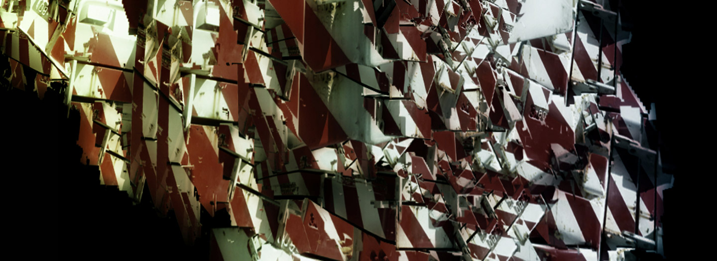 Al igual que las esculturas cinéticas de Jansen, las composiciones audiovisuales de Roel Funcken y Videotroopers cobran vida a través de complejas estructuras, implementando software de alto nivel y trabajando en el proceso de sincronización de audio y vídeo de una manera concreta a la vez que flexible.