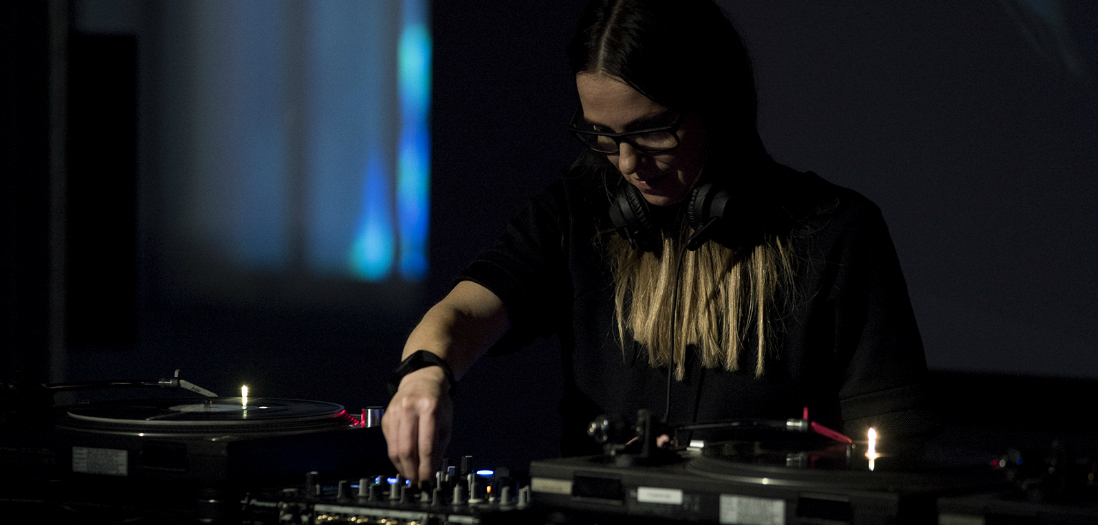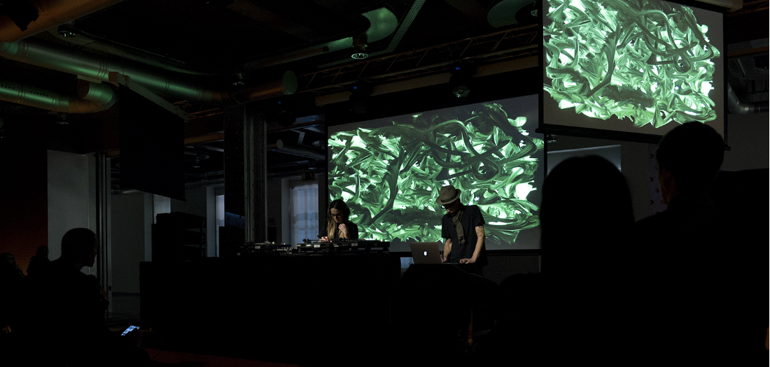 Andrea Parker, pionera de la escena electrónica con más de 25 años de trayectoria, presentó inusuales piezas utilizando formatos de vinilo y acetato, en colaboración con el artista visual James “sheOne” Choules.