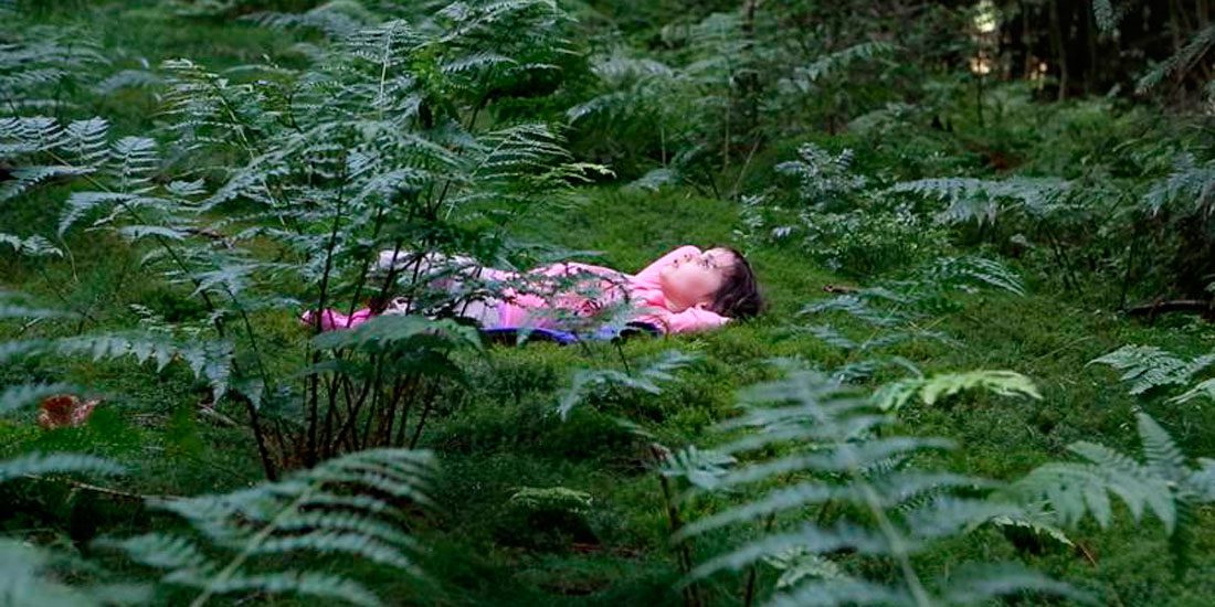Soy consciente de que debe ser muy duro viajar por trabajo con dos criaturas de esa edad y unirse a un proyecto en grupo con muchas expectativas, la mayor de las cuales es producir nuevo material que justifique una exposición itinerante. Pero yo solo pude experimentar calma en el enfoque de Kathryn al hacer su trabajo. Las observé salirse de las carreteras, aparcar en cunetas y deambular a través de la selva. Caminaba con Emma sujeta a su pecho y Luna unida a su osito de peluche con sus botas de plástico arrastrando los pies por las piedras musgosas y a través de bosques neblinosos mientras hablaban de hadas, de flores y de caca.