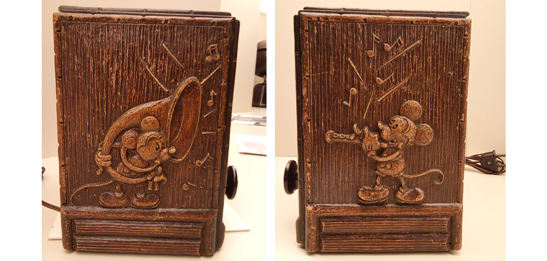 En la exposición ‘1,2,3…¡GRABANDO! Una historia del registro musical’ contamos con una joya que pasa desapercibida para muchos visitantes: una radio Emerson de la década de 1930 decorada en sus paneles de madera con relieves de la mascota del estudio Walt Disney, Mickey Mouse. Queremos aprovechar este cameo del ratón más famoso del mundo en nuestras salas para hablaros sobre algunas de las conexiones entre Disney y la fascinante historia del sonido grabado. Una de ellas es el Mickey Mousing.