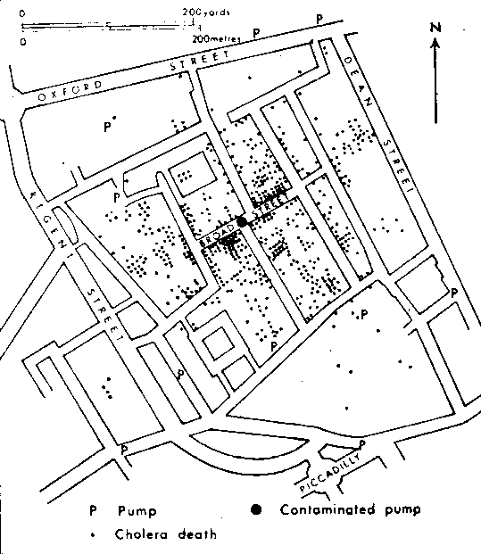 El mapa del cólera de John Snow (1854), presente en la muestra, es uno de los más destacados, absoluto precursor del actual modo de visualizar datos sobre un mapa; El Atlas Comercial y Político de William Playfair (1786) , inventor de los principales modelos de infografía estadística: un modo clásico de visualizar datos; el mapa con el cual Copérnico sitúa al sol en el centro de nuestra galaxia. Aquí tenemos un ejemplo que no utiliza datos, ni tan siquiera hechos en aquel momento, sino suposiciones.