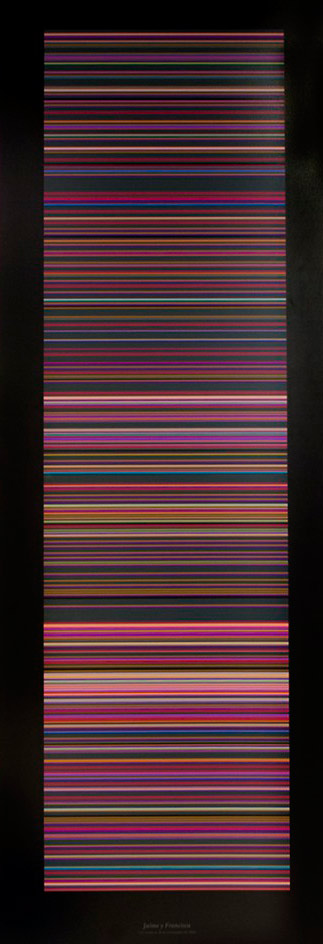 J.S.– A mí no me interesan los datos, me interesa el sujeto. ¿Podemos conocer algo del sujeto a través de los datos? Yo diría que usando datos colectivos, no. Mucho menos los que se recogen actualmente con modernas tecnologías sin la intermediación del individuo. Nada interesante nos puede aportar ese tipo de datos por la sencilla razón de que son objetivos, no cabe interpretación en ellos. Nada más alejado del individuo. Ese tipo de datos no pueden ser verdad. La verdad necesita de componentes como la vivencia propia, la particularidad, la subjetividad, en suma, que nos permite a cada individuo construir nuestra propia y única verdad. A mí me interesa la verdad. Por este motivo aplico el proceso de recolección, procesamiento y visualización a lo que hace una persona concreta en un momento dado concreto frente a una situación concreta. Es ahí, en la intimidad, en la más radical subjetividad, donde, por analogía u oposición, las personas nos encontramos. Es fácil sentir empatía por la historia del otro, pero no es posible sentirla por un porcentaje de una colectividad aunque pertenezcamos a ella. Yo no datifico mi vida íntima para conocerme mejor, eso resultaría ridículo. Lo hago para trazar un ‘yo’ con el que ‘el otro’ pueda identificarse. Ese es el principal fin de las piezas que se exhiben en el MAC de A Coruña.