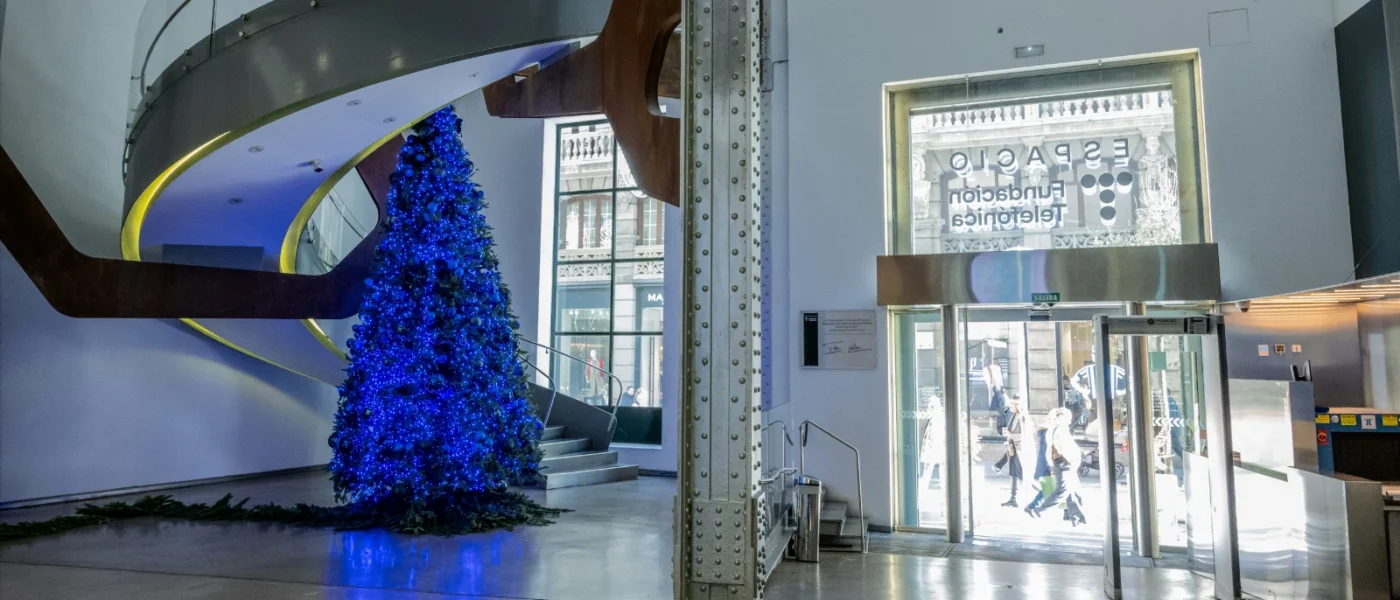 En la entrada al Espacio Fundación Telefónica, los visitantes se encontrarán con el Árbol de Navidad, situado en el hall bajo la escalera principal. Se trata de un abeto de 5 metros de altura, que podrá verse desde el 10 de diciembre hasta el 11 de enero.