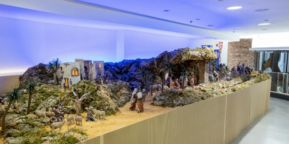 En la entreplanta del hall, se ha instalado El Belén, creado por el reconocido escultor José Luis Mayo Lebrija y su taller. El pesebre representa escenas detalladas como la Natividad, la Cabalgata de los Reyes Magos y la Anunciación a los Pastores. Sus figuras, de entre 7 y 35 cm, se complementan con una cuidada ambientación que incluye un río con agua en movimiento y materiales naturales. Ya se puede visitar y nos acompañará hasta el 4 de enero de 2026.