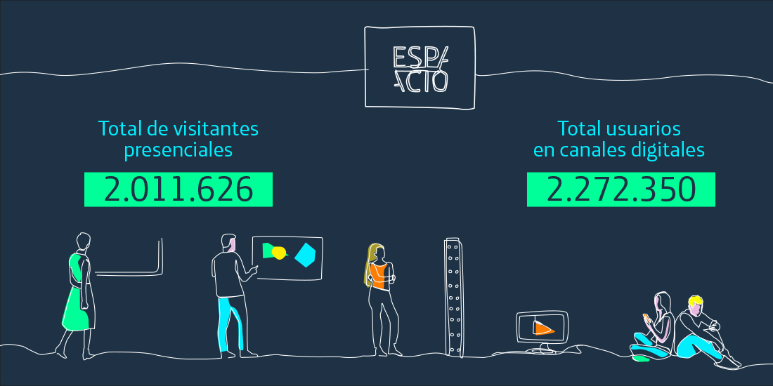 A lo largo de 2019, el Espacio Fundación Telefónica se ha convertido de nuevo en escenario de más de 200 encuentros vinculados a la cultura y las humanidades digitales, la educación y el empleo digital y el impacto de la tecnología en la sociedad. También se han realizado cerca de 1.800 talleres educativos y visitas guiadas gratuitos y para todo tipo de públicos con cerca de 35.000 participantes.