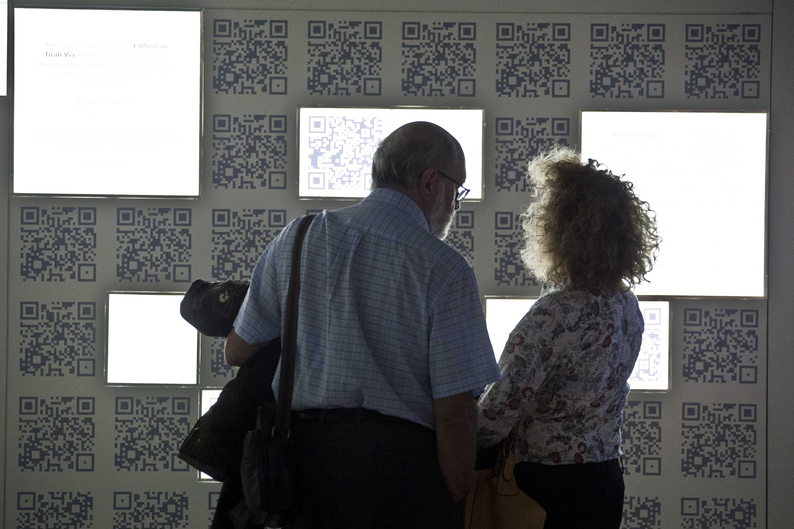 En la pared de Kaleidoscopio se han dispuesto una gran variedad de códigos QR con los que ir complementando la visita al Espacio. Podrás llevar el Kaleidoscopio en tu móvil o acceder a diversas páginas web; también podrás descubrir qué obras tiene Fundación Telefónica en depósito en museos como el MACBA, el IVAM y el Reina Sofía; acceder a información sobre las actividades que se desarrollan en el Espacio o conectarte a la red social de geolocalización History Pin.