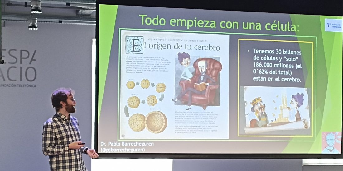 Durante el mes de marzo recibimos a Pablo en Espacio Fundación Telefónica en dos ocasiones como complemento a nuestra exposición Cerebro(s), en la que presentamos este órgano tan fascinante y su funcionamiento desde diferentes perspectivas. El pasado 11 de marzo estuvo impartiendo un taller sobre el cerebro humano para todos los públicos y el próximo 30 de marzo nos visitará de nuevo para conducir un taller enfocado a los más jóvenes sobre cómo afectan al cerebro los videojuegos.