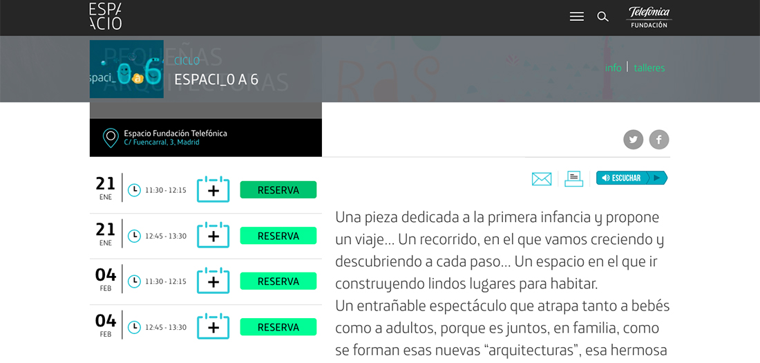 Detrás de todos ellos hay una exhaustiva y cuidada labor gracias a la cual los talleres de Espacio Fundación Telefónica son todo un éxito año tras año. Solo en 2017, se ofrecieron 392 talleres a los que asistieron casi 11.000 personas. Por eso, te recordamos que si no puedes a asistir a alguno una vez confirmada tu asistencia, por favor, entres tu correo de confirmación y canceles tu plaza para que otra persona pueda disfrutar de ella. Además, recuerda ser puntual y acudir 15 minutos antes de la hora de inicio, y ajustarte a todos los requisitos de participación (edad, materiales, documentos de autorización y cesión de derechos, etc.). Por supuesto, nada dejarse las ganas, la ilusión y el interés en casa. ¡A disfrutar!