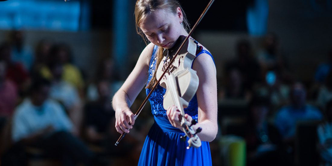Eva Rabchevska tiene 21 años. Nació en Ucrania, pero lleva desde 2014 en España  estudiando en la Escuela de Música Reina Sofía.  Alumna de la Cátedra de Violín Telefónica, hace unos días, con motivo de la inauguración de la exposición ‘3D. Imprimir el mundo’ de Espacio Fundación Telefónica, tocaba por primera vez un violín acústico impreso en 3D que se expone en la muestra y que fue creado como réplica de un Stradivarius.
