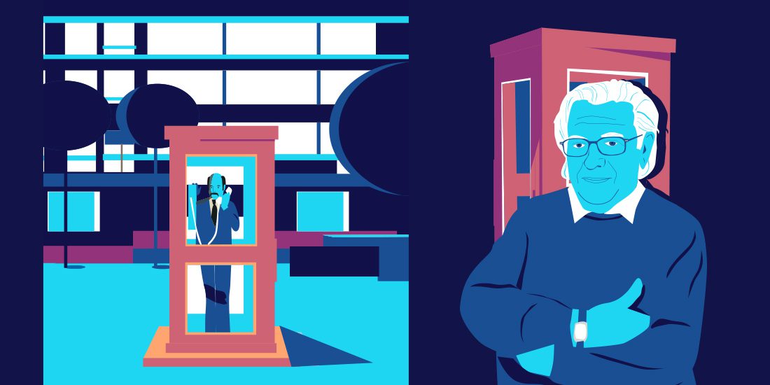 *El guionista David Linares con unos teléfonos de la colección histórico-tecnológica de Telefónica, ‘Historia de las Telecomunicaciones’. En la foto, el teléfono de uso público (modelo 5536-M) que aparece en ‘La cabina’ de Mercero. Este modelo se utilizó primero con fichas y posteriormente con pesetas.