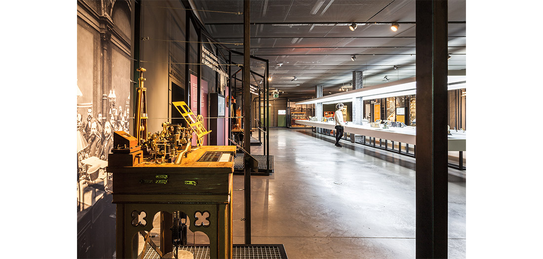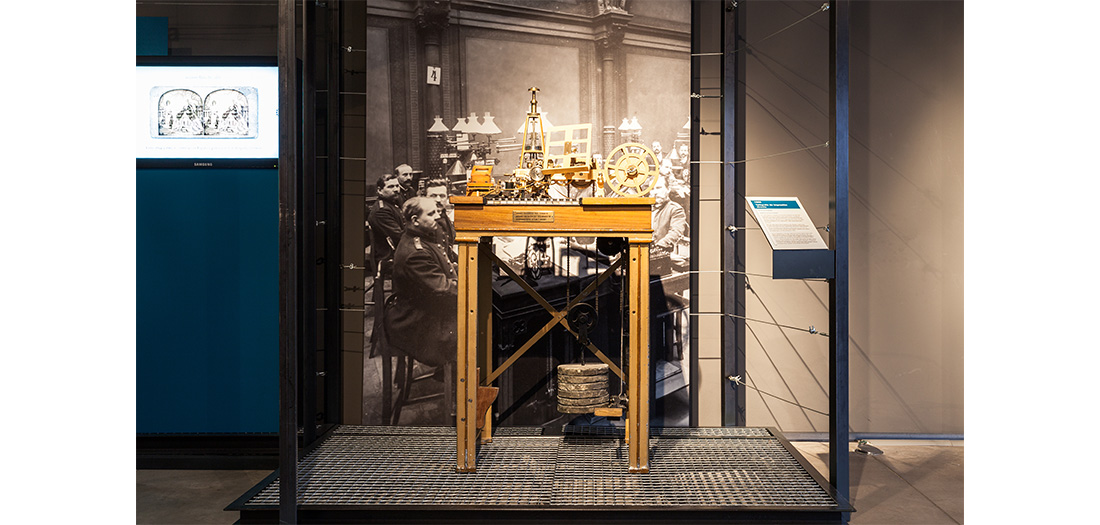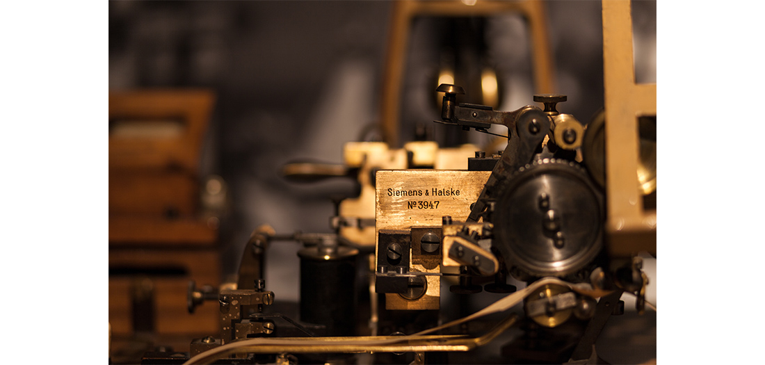 David Hughes (1831-1900) cumple con el perfil de varios de los inventores más destacados de la historia de la comunicación a distancia: se introdujo en ese campo por casualidad. Interesado en la física como medio para innovar en el ámbito musical, el británico comenzó a trabajar en un sistema que permitiese, al tocar una pieza en un piano, transcribirla simultáneamente sobre un folio, creando una partitura. Su investigación terminó aplicándose a las telecomunicaciones, transformándose en el primer sistema de impresión telegráfica, patentado en 1855. La primera pieza de nuestra exposición es por tanto un telégrafo de impresión directa, un aparato fascinante tanto técnica como estéticamente.